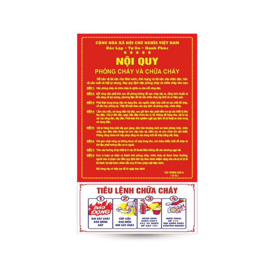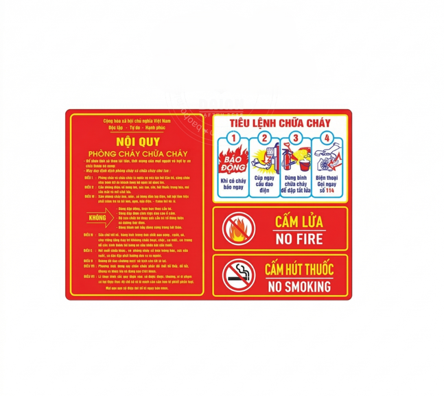 | Tên bộ sản phẩm | Bộ Nội quy & Tiêu lệnh chữa cháy (Gồm 2 tấm rời) |