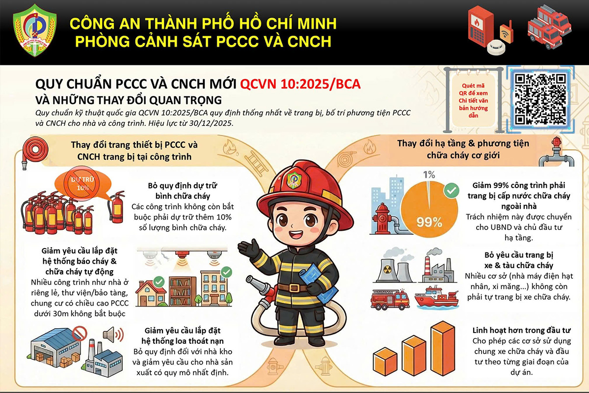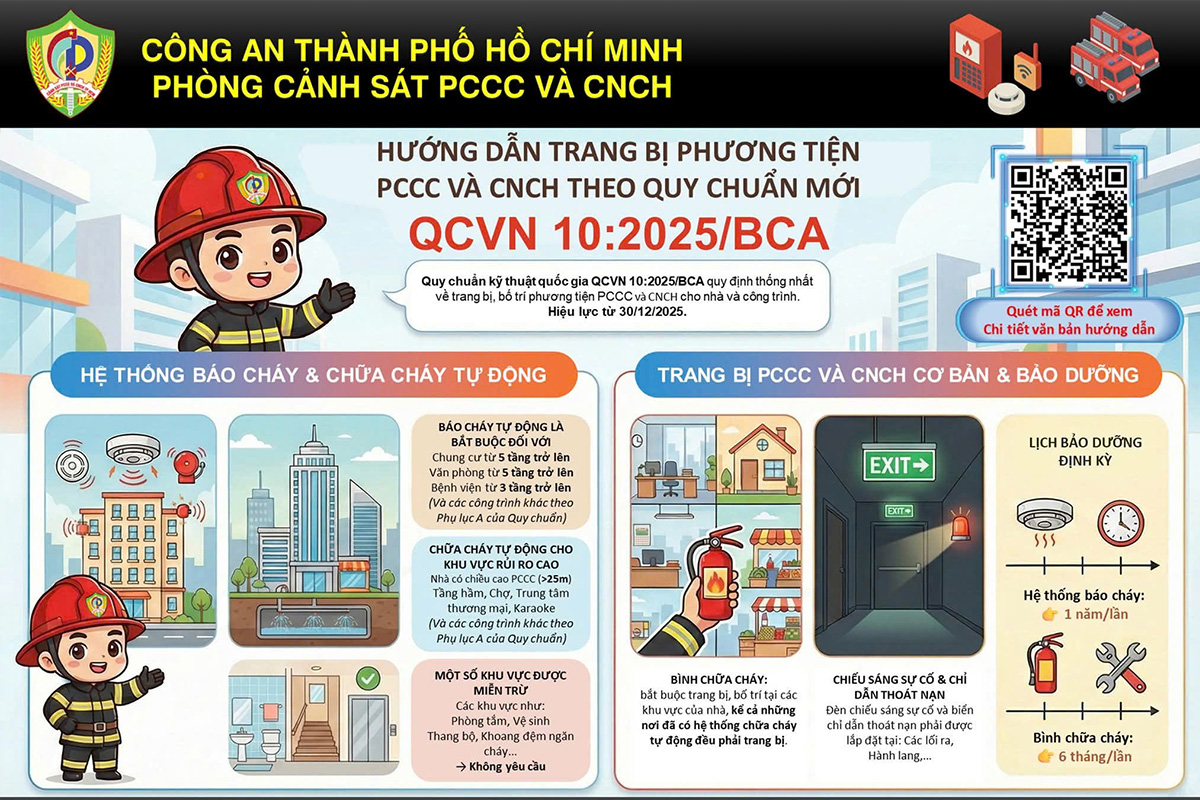 Trong bối cảnh tình hình cháy nổ diễn biến phức tạp, yêu cầu về an toàn PCCC ngày càng được nâng cao. Quy chuẩn QCVN 10:2025/BCA ra đời nhằm chuẩn hóa và cụ thể hóa các yêu cầu kỹ thuật, thay thế và bổ sung cho các quy định trước đây để phù hợp với thực tiễn phát triển đô thị.